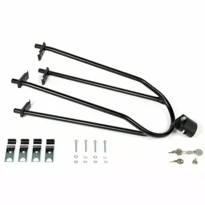 L’attache est équipée d’un cadenas à serrure pour que le panier reste solidement attaché en balade. Elle s’installe sur les haubans du vélo ayant un diamètre compris entre entre 10 et 22 mm, ce qui permet une compatibilité avec la plupart des vélos.