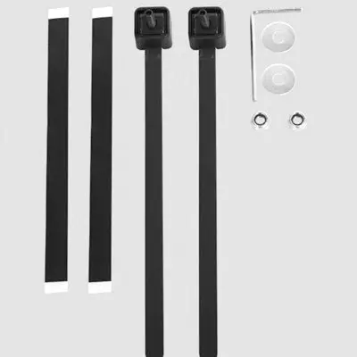 La paire de colliers de fixation permet d’installer un antivol de cadre même si le vélo n’est pas équipé de trous filetés sur le cadre. Les bandes de serrage s’installent sur les haubans (jusqu’à 50 mm de diamètre). Elles sont équipées de plots permettant de fixer l’antivol de cadre via des boulons et rondelles. Tout est fabriqué en Allemagne.