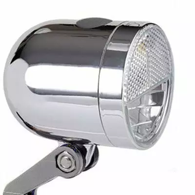 De couleur chromée, le feu avant possède un aspect ancien par sa forme ronde. Il se fixe sur le trou au niveau du pont de la fourche du vélo grâce à une fixation.