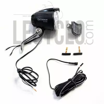 Cet éclairage avant pour vélo s’installe sur un vélo électrique ou un VAE (vélo à assistance électrique). Le Feu Busch avant pour vélo Cyo E est alimenté par un courant continu dont la tension est comprise entre 6 V et 42 V. Ce feu est équipé d’un réflecteur avant que vous pouvez monter ou démonter facilement du feu selon vos besoins. Avec le réflecteurs, ce feu vous offre une puissance de 80 lux.