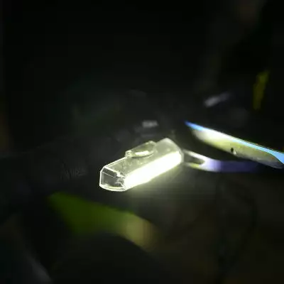 Servant à se signaler efficacement en ville ou lors de sorties à bicyclette, le feu de vélo Ultratorch Slimline F100 de la marque Oxford assure une intensité lumineuse de 100 lumens sur 270°. Il émet une lumière blanche et est équipé de LEDs performantes de nouvelle technologie COB (Chip-On-Board). 8 modes d’éclairages* sont disponibles :