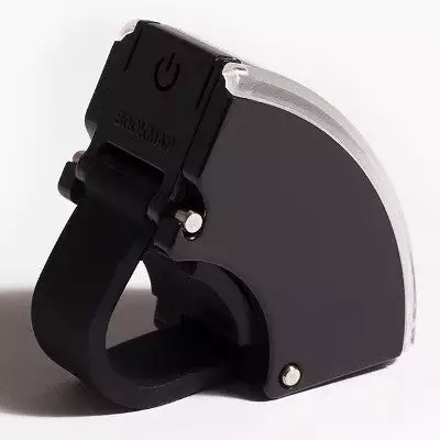 À monter sur un guidon de 22 à 42 mm de diamètre, le feu avant Curve Bookman se fixe par une sangle élastique en silicone. Petit et compact, il ne prend que peu de place sur le cintre : il mesure 57 x 30 x 35 mm (Hauteur x Largeur x Profondeur) pour seulement 46 grammes. Il permet aussi au cycliste de donner facilement une touche colorée à son vélo. En effet, l’éclairage designé en Suède existe en noir, blanc ou orange au choix (attention lors de l’ajout au panier à bien sélectionner la couleur désirée). Il a d’ailleurs remporté un prix German ABC Design pour son look fun et original.