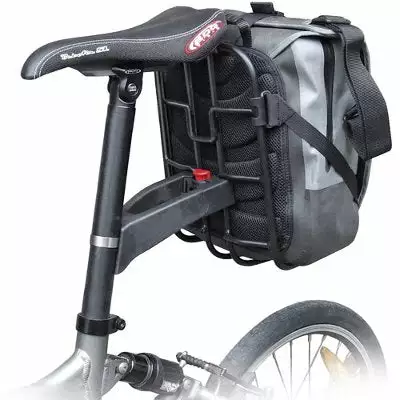 Ce support pour sac permet de transporter toutes sortes d’affaires sur votre vélo et jusqu’à 7 kg. Ce porte bagage vertical de conception originale et pratique possède une sangle réglable avec réflecteur pour maintenir solidement vos bagages durant le transport. La bretelle peut être fixée à divers emplacements pour s’adapter à vos objets. Le support se fixe sur le guidon ou la tige de selle du vélo au moyen de fixations KLICKfix non fournies.