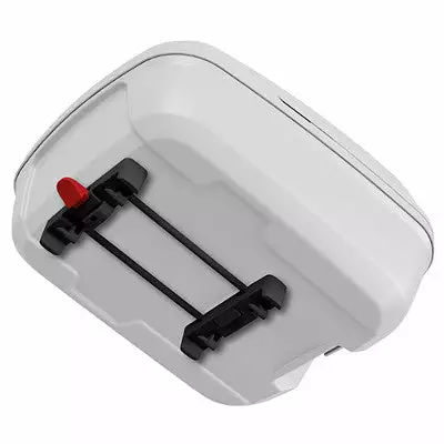 Le retrait du top case est tout aussi facile : il suffit d’appuyer sur le levier pour déclipser la fixation. Une poignée est par ailleurs intégrée pour faciliter le transport du top case lorsque le cycliste quitte le vélo.