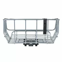 Le panier noir mesure 34 cm de large, 25 cm de long et 27 cm de haut : il peut accueillir un volume de 22 litres d’affaires pour une charge maximal de 5 kilos. Grâce à ses mailles serrées, il est possible de transporter jusqu’aux plus petits objets. Un tendeur de maintien permet d’optimiser la sécurité des affaires transportées. De plus un sac pour panier avant vous permet de transporter facilement vos courses une fois à pied.