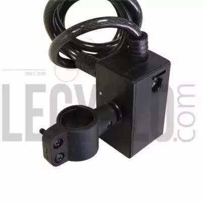 Cet antivol est résistant à l’eau et muni d’un câble en acier solide de 10 mm de diamètre. Sa longueur est de 120 cm . L’antivol ne pèse que 465 grammes pour vous faciliter son transport et son rangement. Il est livré avec 2 clés, une clé avec éclairage LED et l’autre de rechange. L’alimentation se fait par une pile 9 V.
