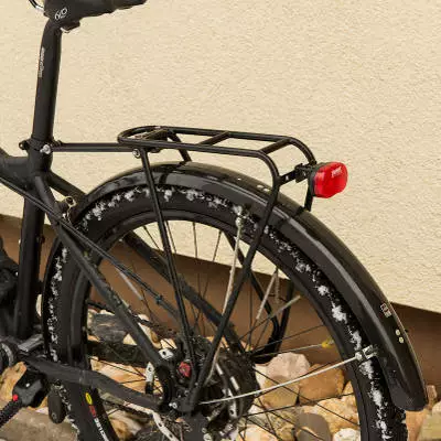 De plus, le porte-bagage se fixe selon deux possibilités : sur l’axe à serrage rapide (fourni avec) pour une installation simple et rapide ou bien sur les œillets au niveau de l’axe de la roue arrière.