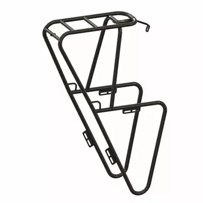 Stable et robuste, le porte bagages vélo est en acier 25CrMo4. Il pèse 780 grammes et supporte une charge maximale de 18 kilos. Les tubes ont un diamètre de 12 mm. Un rail est présent à l’avant pour l’installation d’un phare avant de vélo (voir photo).